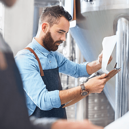 man looking at report